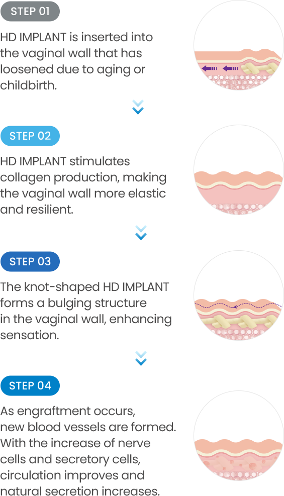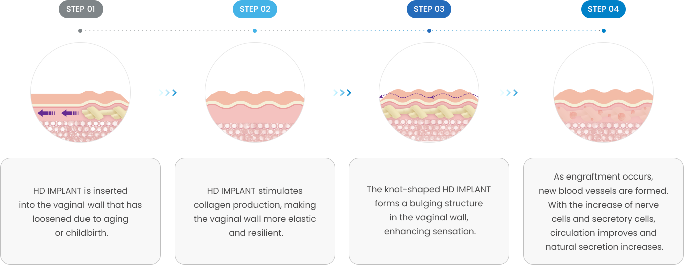 This procedure involves inserting HD IMPLANT-F, a human-derived allogeneic dermal graft processed into a knot-like form, into the vaginal tissue.