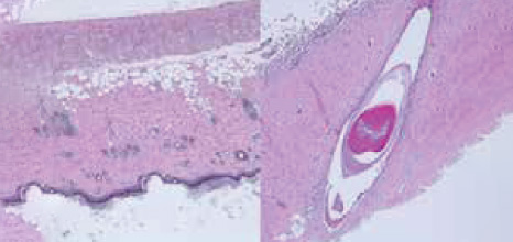 원재료(Native) 피부에서는 다양한 종류의 수많은 세포, 모근 등이 확인됨