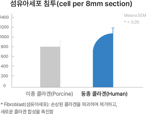 (대조군 대비 43%, 콜라겐 도포 대비 19% 증가)