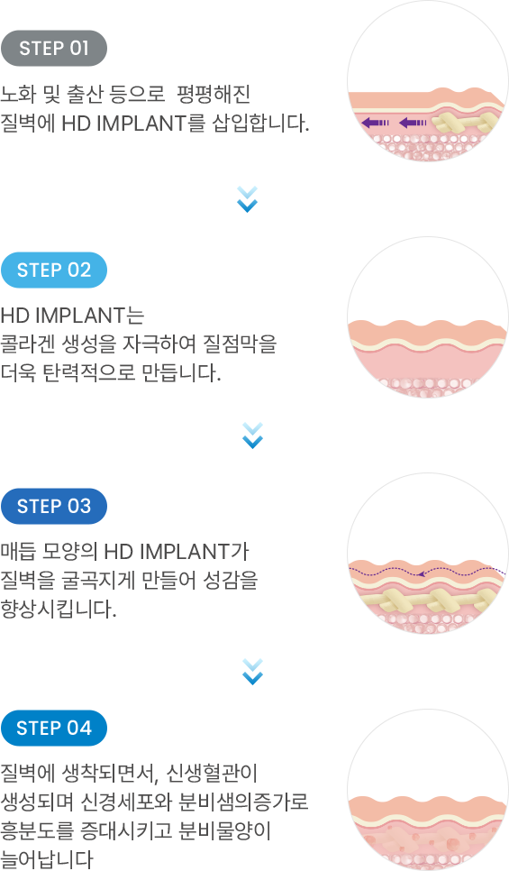 인체유래 동종진피를 매듭형태로 가공한 이식재(HD IMPLANT-F)를 질에 삽입하는 시술입니다.