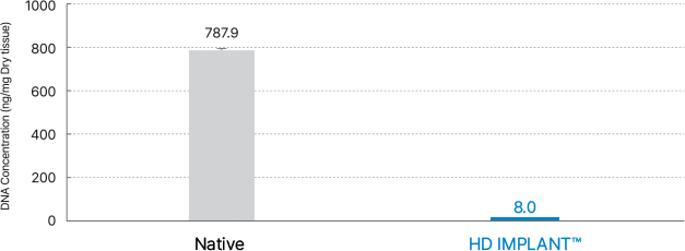 HD IMPLANT™에서 용출된 잔류 DNA가 거의 없음을 확인함(EATB - 유럽조직은행연합회 기준우수한 기준)