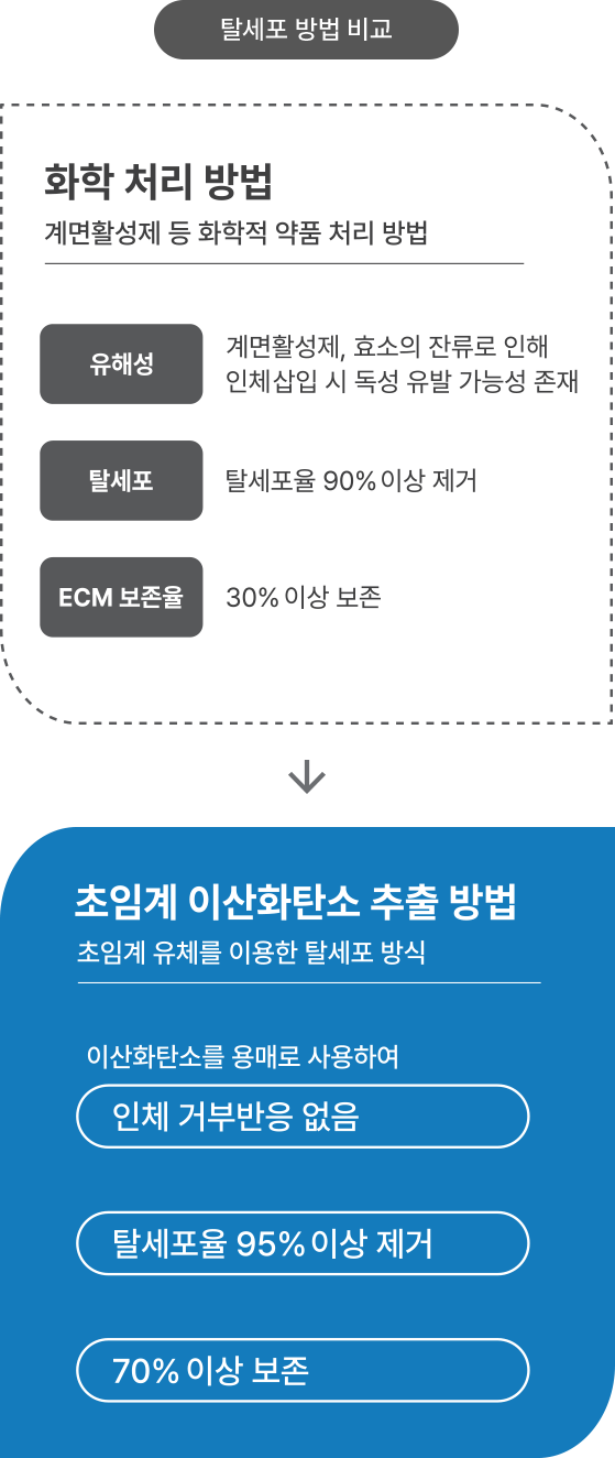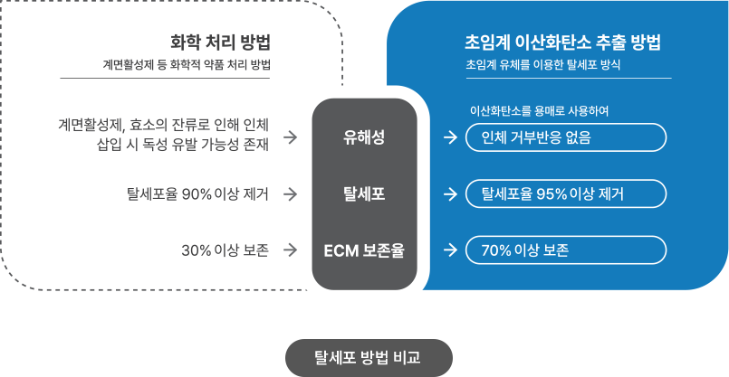 CO₂를 이용한 탈세포화 공법으로 계면활성제가 전혀 들어가지 않은 무독성 제품